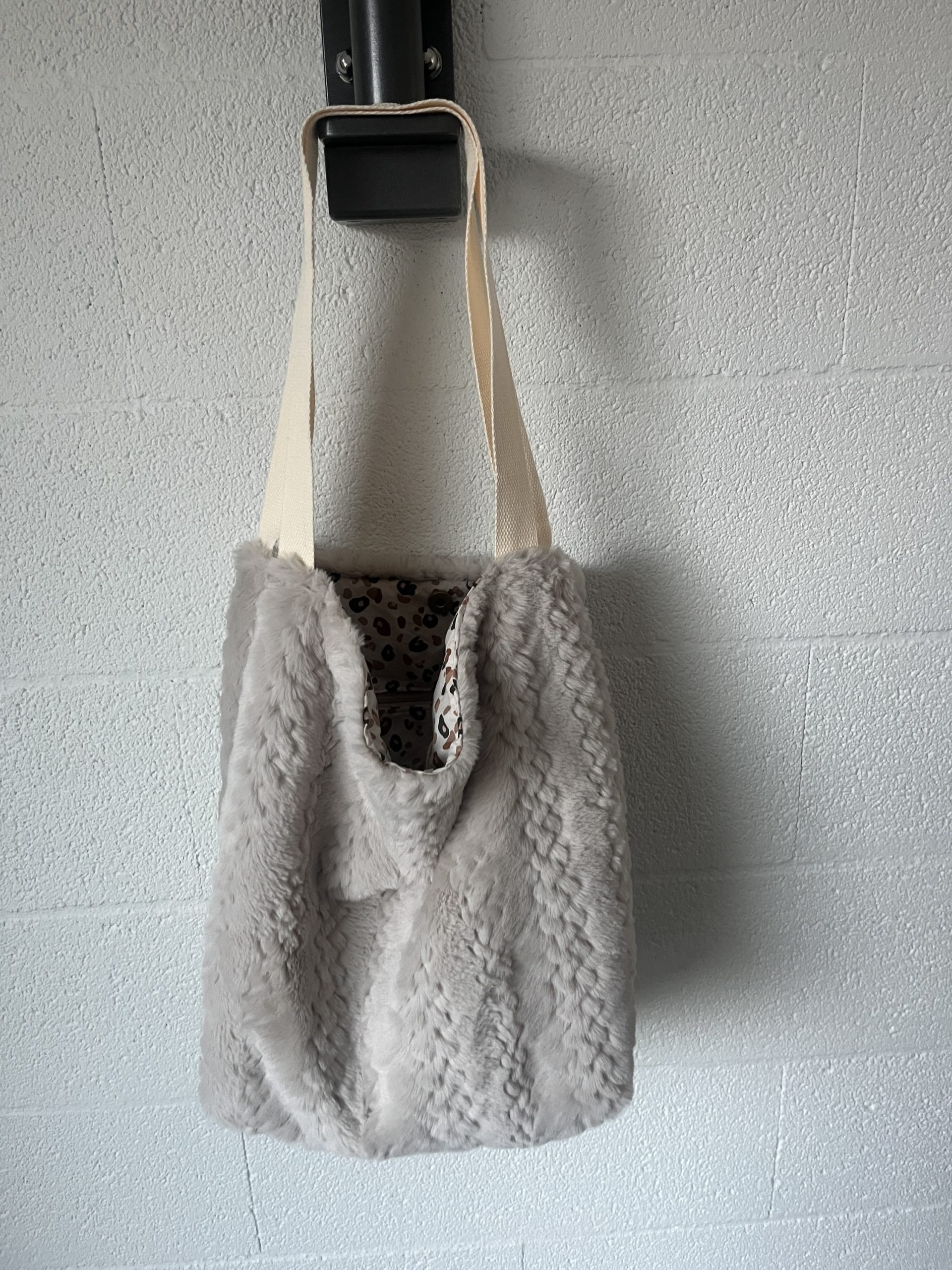 Sac en velours côtelé ou doudous avec poche et fermeture éclair, doublure coton